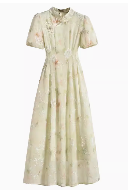 大码女装夏季新中式国风改良旗袍年轻款少女气质高级感碎花连衣裙说明