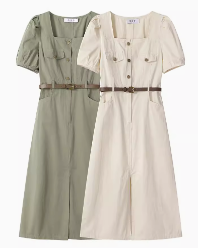 休闲复古港风工装牛仔连衣裙女夏季高级感开叉气质长裙说明