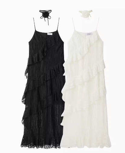 法式高级感荷叶边V领吊带连衣裙夏季女宽松.